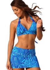 - Svimdress. Interesting closed modern model is a T-shirt and panties with a skirt. Suitable for those who do not want to draw attention to the imperfections of the figure, can not open large parts of the body for tanning.