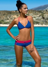 Broad shoulders, small pelvis, not pronounced waist. Do not make a choice in favor of models with strings, patterns, flounces at the top. Yes - closed bodice without decoration. Swimming trunks can be combined from another swimsuit, bright with ornaments, bandages, ruffles - it will distract attention from wide shoulders. Tankini and swimsuit with a high waist with swimming trunks will certainly suit a light color.