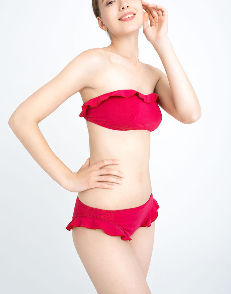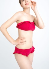 Girls with small breasts should choose swimsuit models with ruffles at the top.
