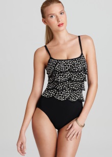 Tankini and sweet-dress are suitable for appetizing figures. Ruffles, in this case, they should not be voluminous and should not differ in color from the main background.