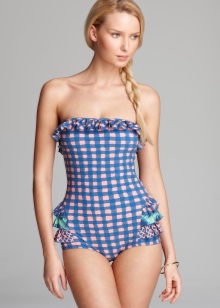 Also swimsuits differ from each other styles. Types of swimsuits fused, decorated with ruffles: