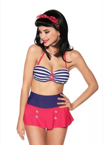 Choose a retro swimsuit with a thematic print - polka-dotted, striped and with a small floral pattern. Colors should be bright and saturated, give up the pastel and faded colors.