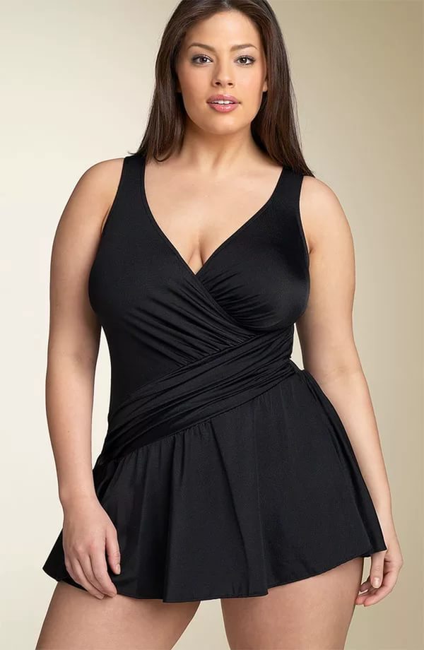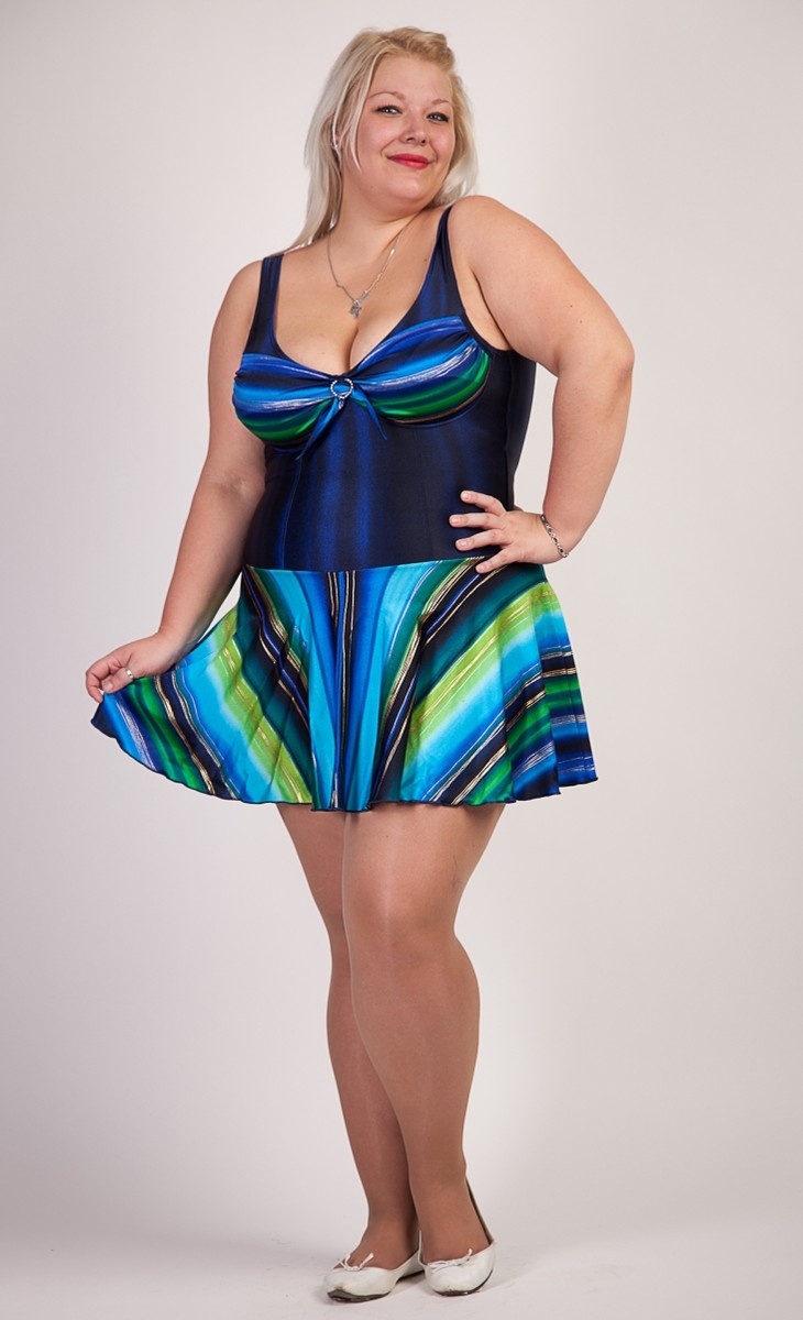 - We can clearly see that the swim dress is the perfect solution for owners of magnificent forms. The fitted swimsuit, smoothly expanding to the bottom, resembles a short dress. He makes the figure slimmer, hides wide hips and other flaws. You will feel great in it!