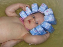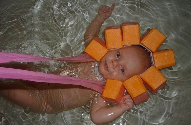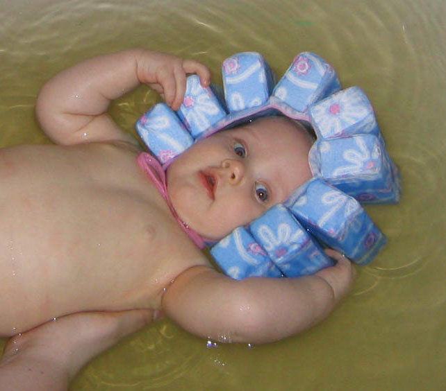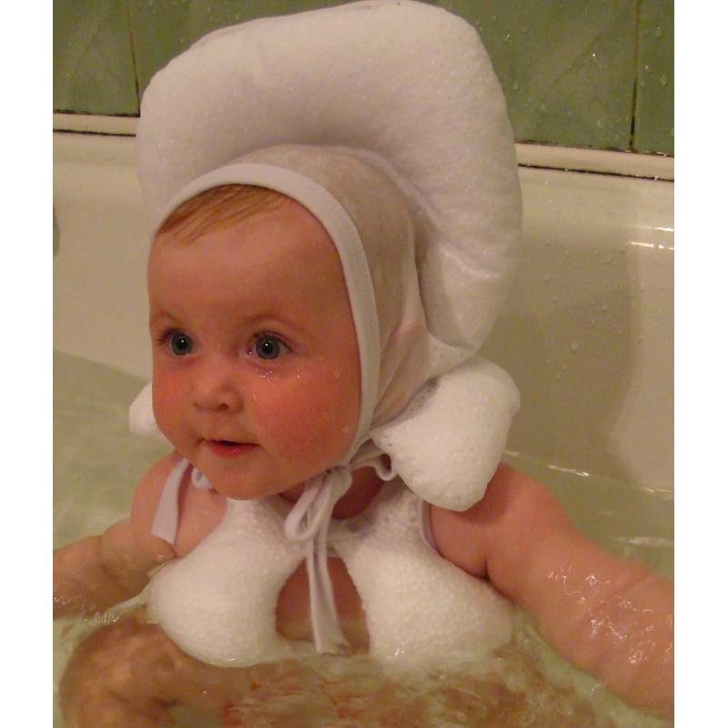 Sometimes mothers use an inflatable model. In some cases, the cap is necessary so that water does not get into the ears.