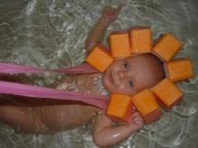 Designers have developed special hats for bathing babies of infancy. Bathing is an extremely important and responsible hygienic procedure. Mom does not always have an assistant for this purpose, so a special cap will be very helpful. If the baby only joins swimming, then a cap with foam paste will help you. (or mermaid cap). Outwardly, it resembles a daisy with petals, which allows the head to stay above the water.