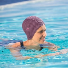 A small lack of silicone hats - they too fit the head, often have thickened edges to prevent water from entering the head. For some people, especially older ones, it causes discomfort, sometimes turning into a headache. So swimmers better prefer hats made of cloth.