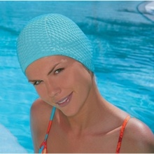 The most "ancient" type - latex hats, which have many drawbacks. They are very thin and fragile, they are hardly put on the head, because of which they are easily torn. In addition, they stick to the hair, spoil it, cause allergic reactions. This attribute is more or less suitable only for short-cut swimmers. After each use, the latex cap must be covered with talcum powder, otherwise it will stick together. The only advantage of these products is a very low price. They are usually offered in pools at a very low price. These caps have long been superseded by the latest technology.