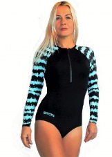 The cotton model with the addition of elastane is perfect for swimming in open water and is not intended for the pool at all, since the chlorine contained in the water will very quickly destroy the structure of the material.