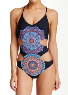Monokini suit is a one-piece swimsuit with cutouts on the sides. His form is rather restrained, but at the same time original. It does not fit plump girls with folds on the stomach and sides. Most often, the bodice cups have a push-up - it allows you to support the breast, giving it appetizing outlines and increasing in size.