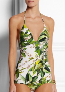 If you prefer a more closed version of a swimsuit, for example, one-piece or tankini, then you should pay attention to models with a print of green shades.