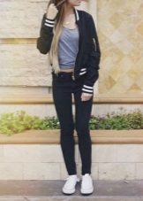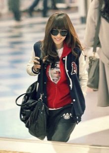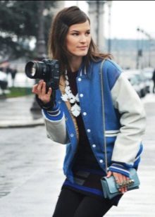 - As for the accessories to the image with a baseball jacket, it is important not to overdo it. A good choice would be aviators, and in the selection of jewelry should be abandoned massive objects, because the baseball jacket itself looks luxuriant and volume. Moreover, usually a jacket of this type is a bright thing with a combination of several shades and the presence of eye-catching stripes.