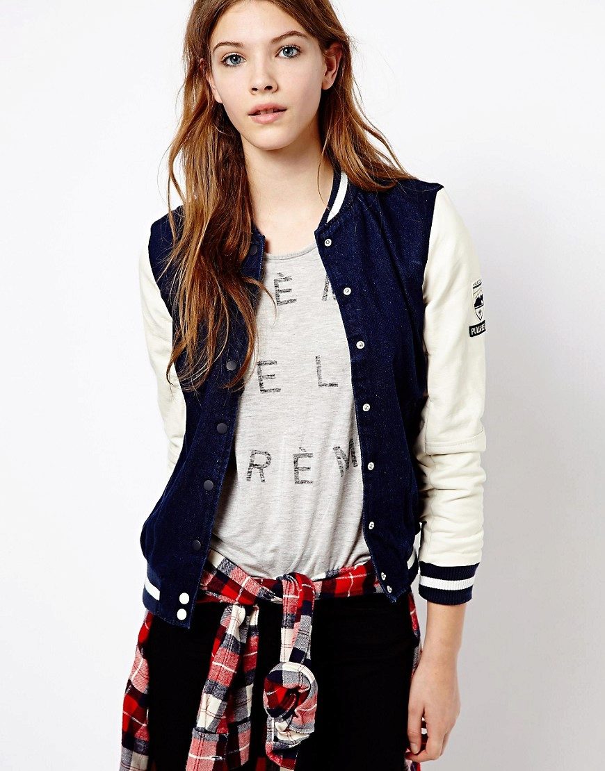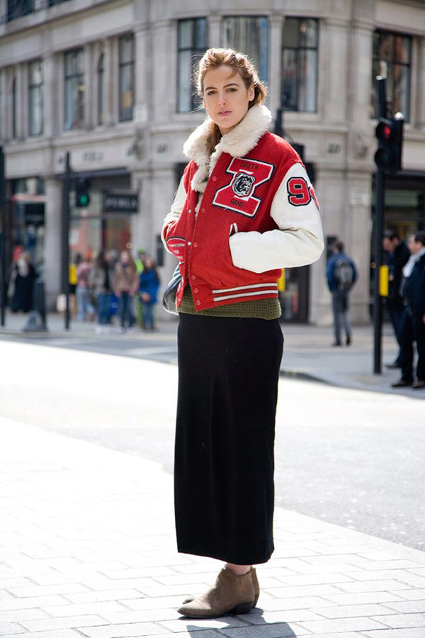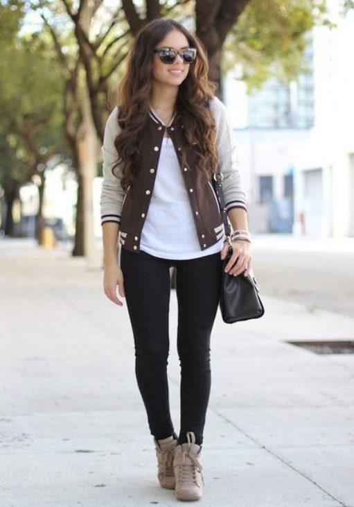 - Feminine and attractive looking A combination of a baseball jacket and a skirt. In this case, the skirt can have different lengths and different styles. In both the narrow and the flared model, adding a baseball jacket to the image will make it fragile and feminine.