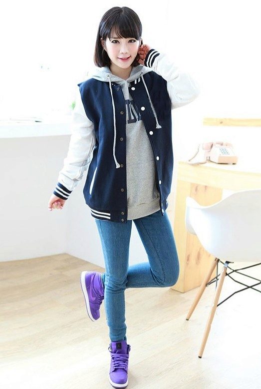 Due to the properties of the baseball jacket to add body to the figure, such clothes are very popular with girls who want to hide the imperfect waist, the modest size of the bust or wide hips.