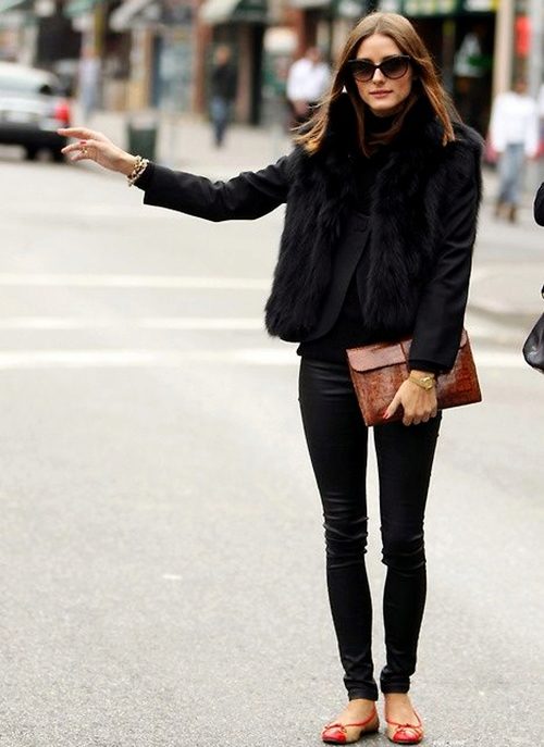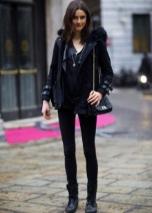 Fur black jacket perfectly complemented by jeans, classic trousers, turtlenecks, sweaters. As shoes can be used as ankle boots or boots with heels, and boots with a flat sole.