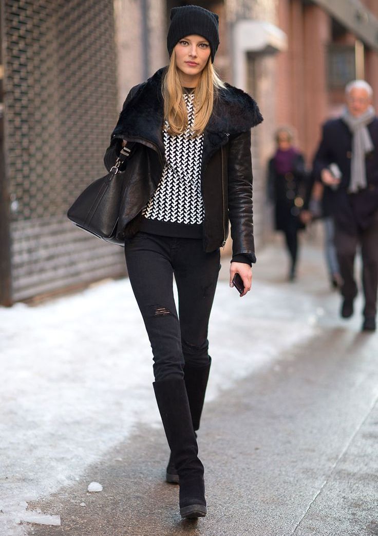 The black jacket is good because there are practically no questions about what to combine it with. To make a mistake with the choice of a suitable clothing ensemble is difficult, this thing is so versatile and practical.