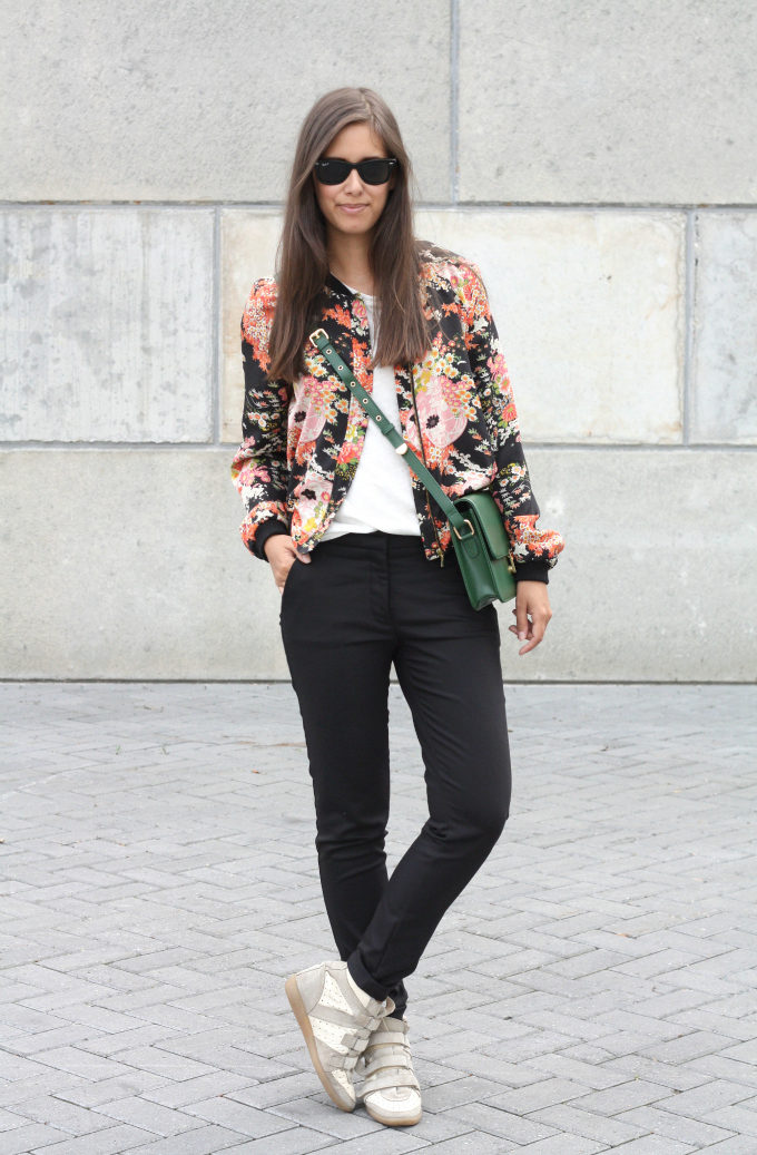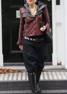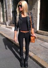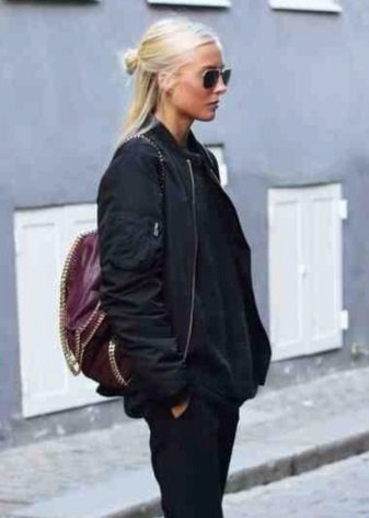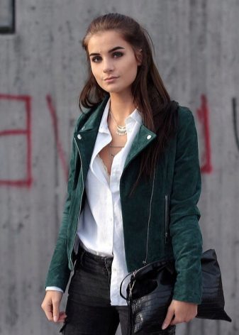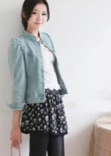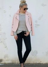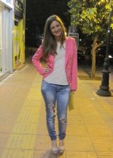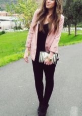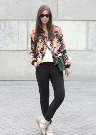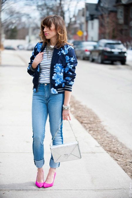 If it is made in a casual style or from leather in a sporty style, then jeans with black and classic blue colors will be perfectly combined with it. In this look it would be nice to add shoes and a bag to match the jacket, then you will look stylish, not allowing the "overload" of color in appearance.