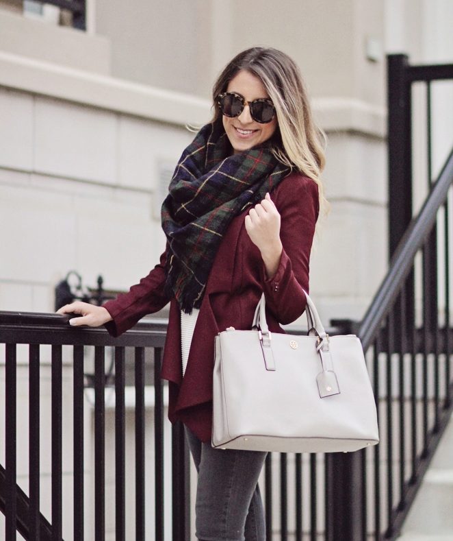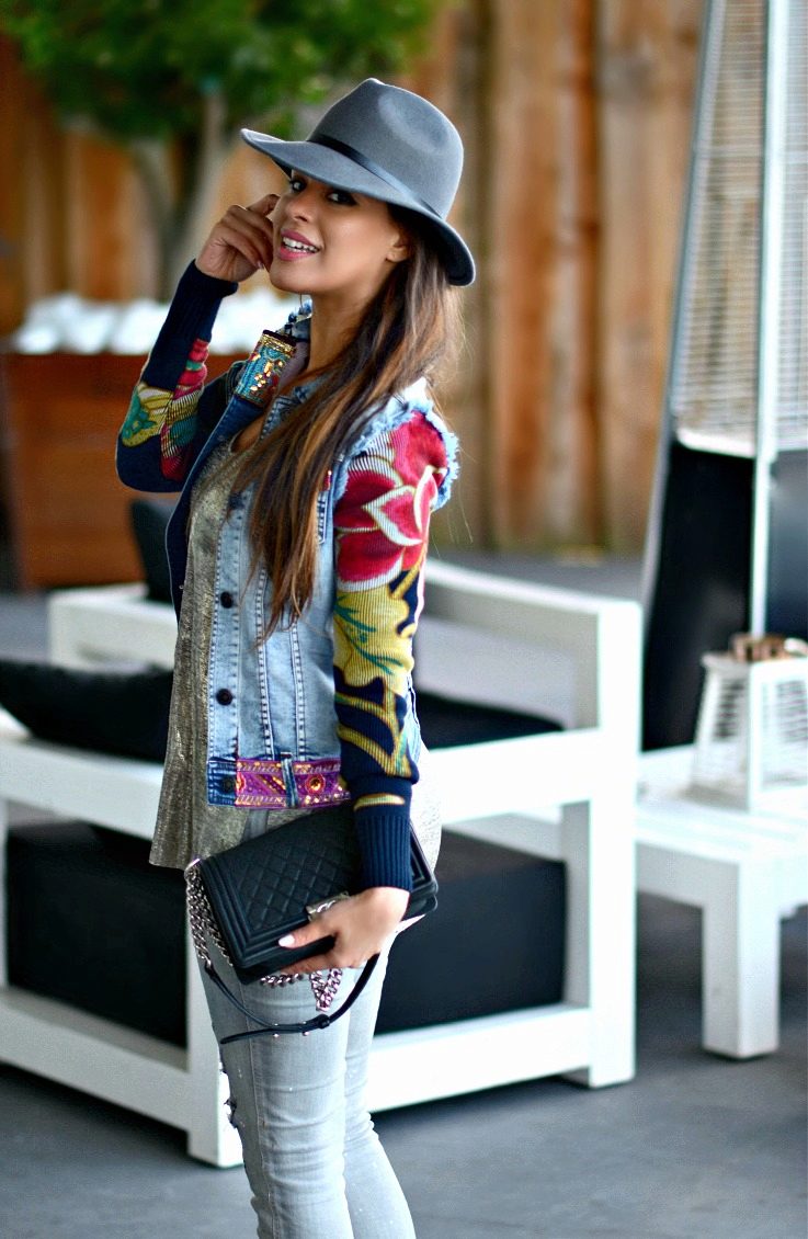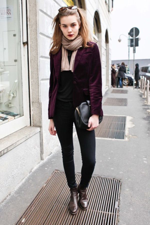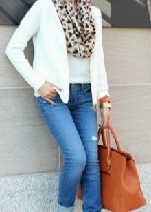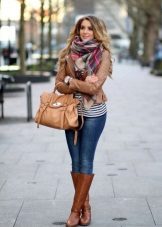 The best print option would be an English cell, a combination of textures and patterns is acceptable. The main thing is that in a bow with a checkered jacket there are no other similar things. It is better to choose plain jeans and shoes and a minimum of accessories.