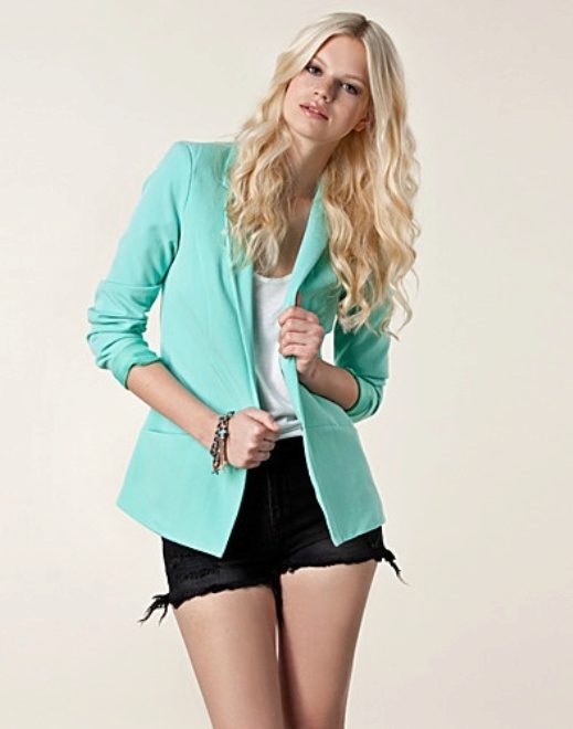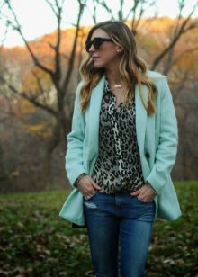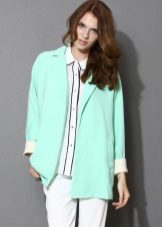 Turquoise jacket will look great with things brown, white or delicate peach color - this combination will give the image a light and romantic look. And to create a bright and memorable bow, we recommend combining turquoise with bright green, yellow or light pink flowers.