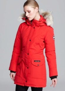 Red Alaska jacket is becoming popular. Practical and convenient, it will give you not only warmth and comfort in a cold winter, but also help to create a stylish image in casual style. You can combine it with any shoes. Accessories in the form of hats and scarves will also be most welcome.