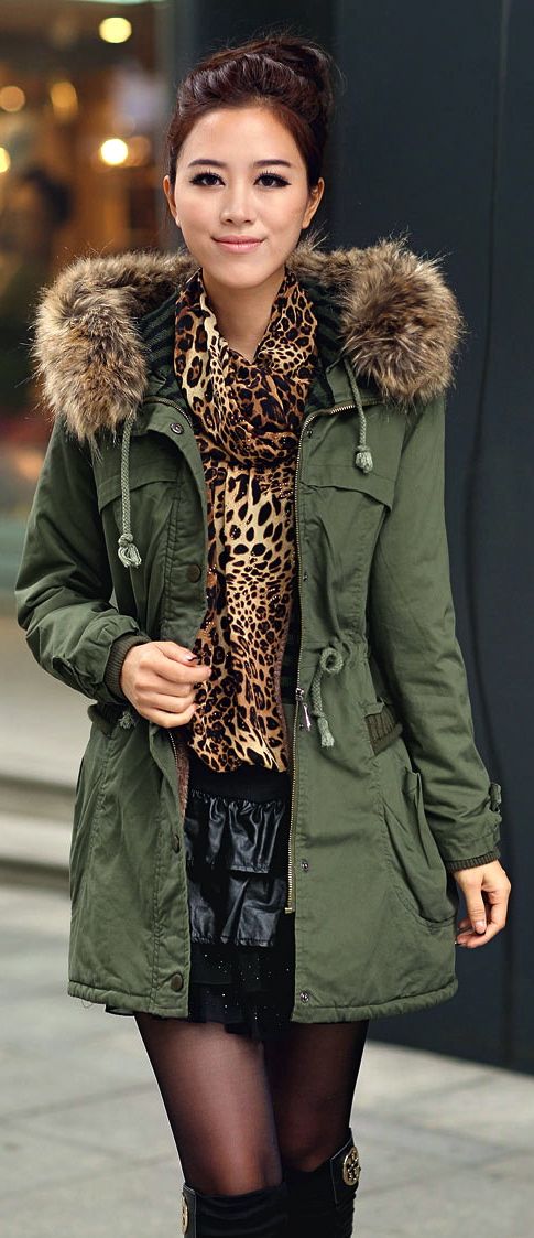 Due to the contrast, any girl will appear in such pseudo-military jackets especially gently and feminine.