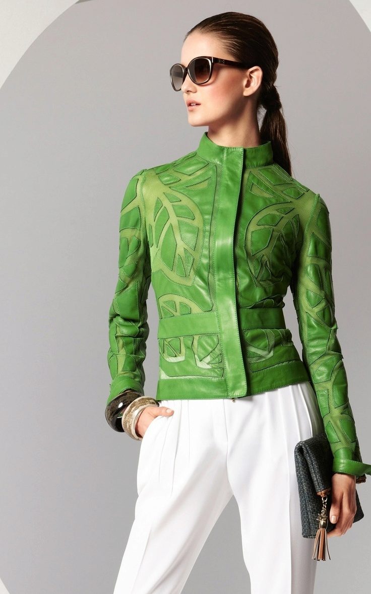 Green color in the palette of colors takes an intermediate position, not completely referring to either warm or cold tones.Therefore, a green jacket can be used as a kind of adapter between the colors of things in the image, creating very unusual and extravagant, but at the same time stylish ensembles.