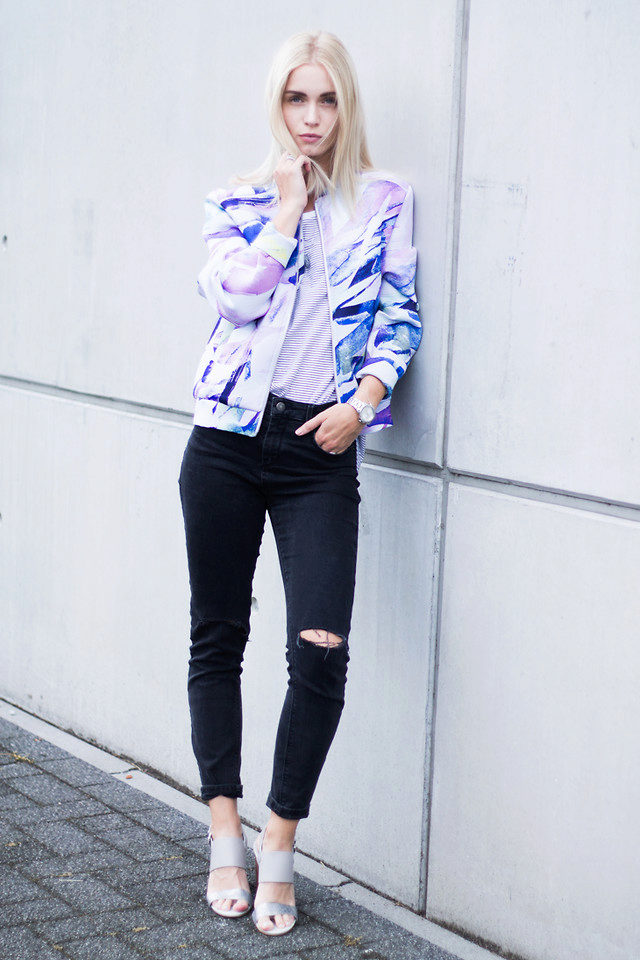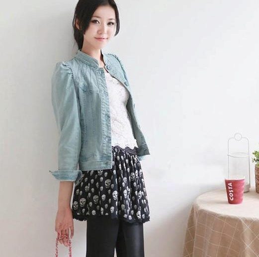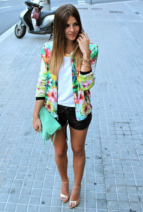 Slender girls can wear any styles of jackets, but it should be borne in mind that the abundance of large flowers may look too glamorous and even a little silly.