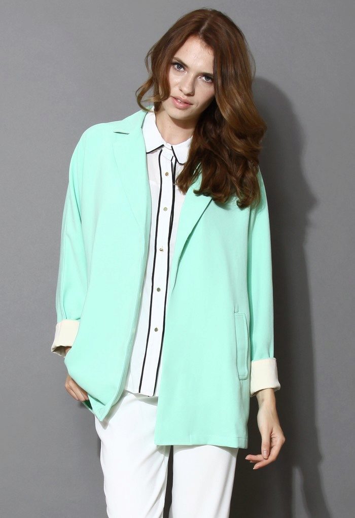 The delicate color of pistachio ice cream became popular thanks to Marc Jacobs, who presented his famous “mint” collection several years ago. Since then, things of this color are increasingly appearing on the runways, and jackets are no exception.