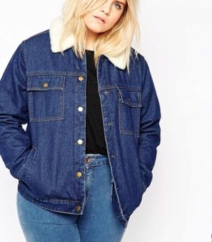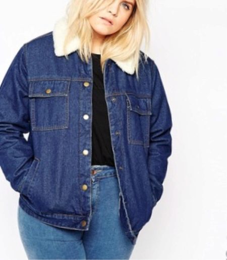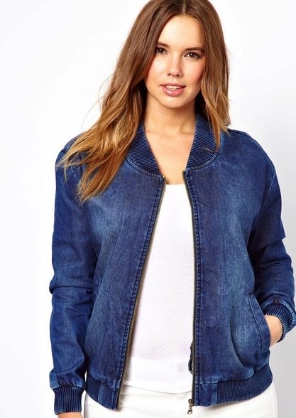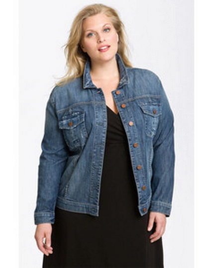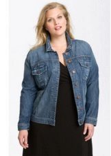 For a denim jacket to fit perfectly, you need to stick to your size, and not buy a size larger, because in such cases a full girl will seem even thicker.
