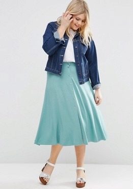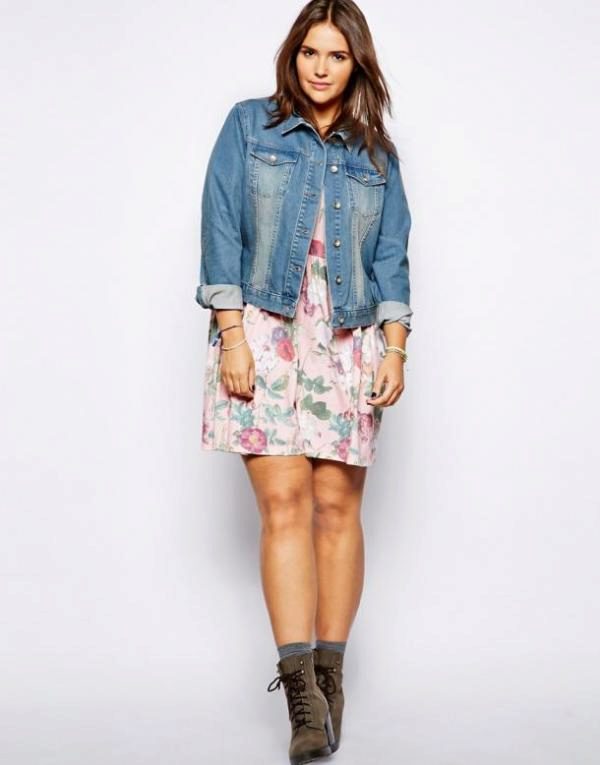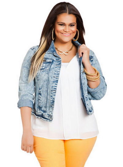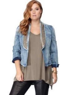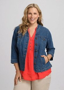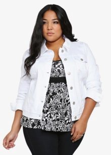 A denim jacket can be a fashionable decoration of the image, if you choose the right style and size. Fat girls can allow shorter fitted models that emphasize the waistline. Another good solution would be a mid-thigh length jacket, as it hides full hips.