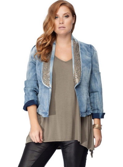 Owners of magnificent forms must have a fashionable denim jacket in their wardrobe. Today, denim clothing is in great demand, often presented on the catwalks in stylish collections from famous designers.