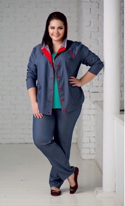 For girls who prefer men's motifs when choosing clothes, they can wear a man’s flannel shirt. The classic combination of thin knit sweater with a large size jacket is also very popular among obese women.