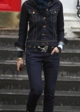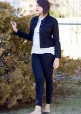 To create a business image jacket should be a strict, seasoned style. In combination with classic trousers or a pencil skirt, and a white or light blouse, denim takes on a completely office look. High-heeled shoes can be used as a detail to complete the image. Although the usual classic shoes here will also be quite appropriate.