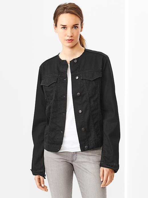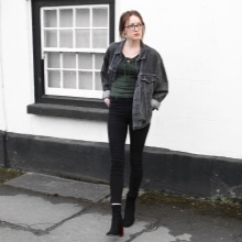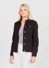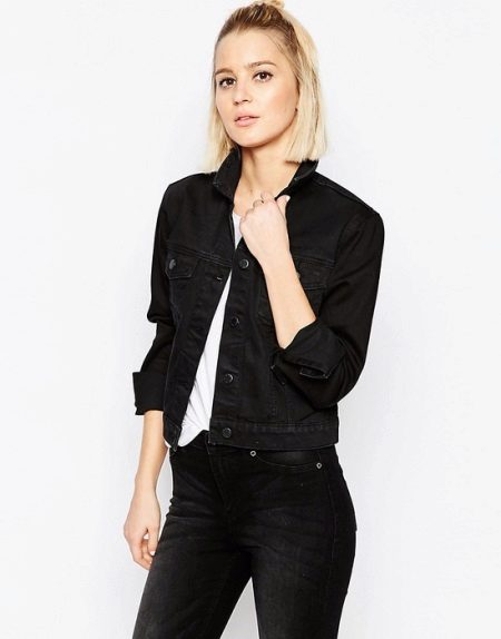 If you are a fan of classic-style denim, then surely pay attention to the model of a black denim jacket with a collar, patch breast pockets and a button-down buckle. Just like the blue jacket, the black one will be no worse combined with many things. But, despite its “official” color, this model is not suitable for attending business events.