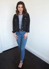If you plan to go to work in the purchased jeans, then we recommend to consider a model of strict cut without unnecessary details. A black jacket without pockets on the chest and buttons instead of buttons may well play the role of a business jacket, and you will feel comfortable throughout your day in it, like in your favorite clothes.