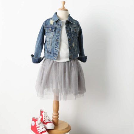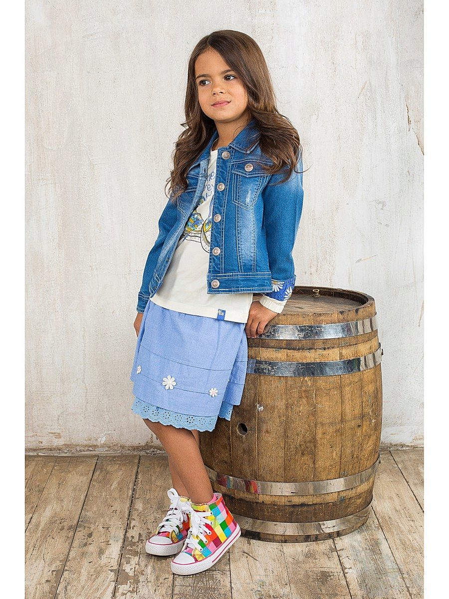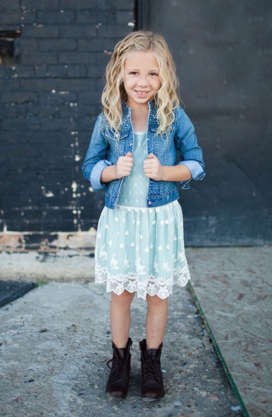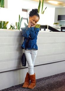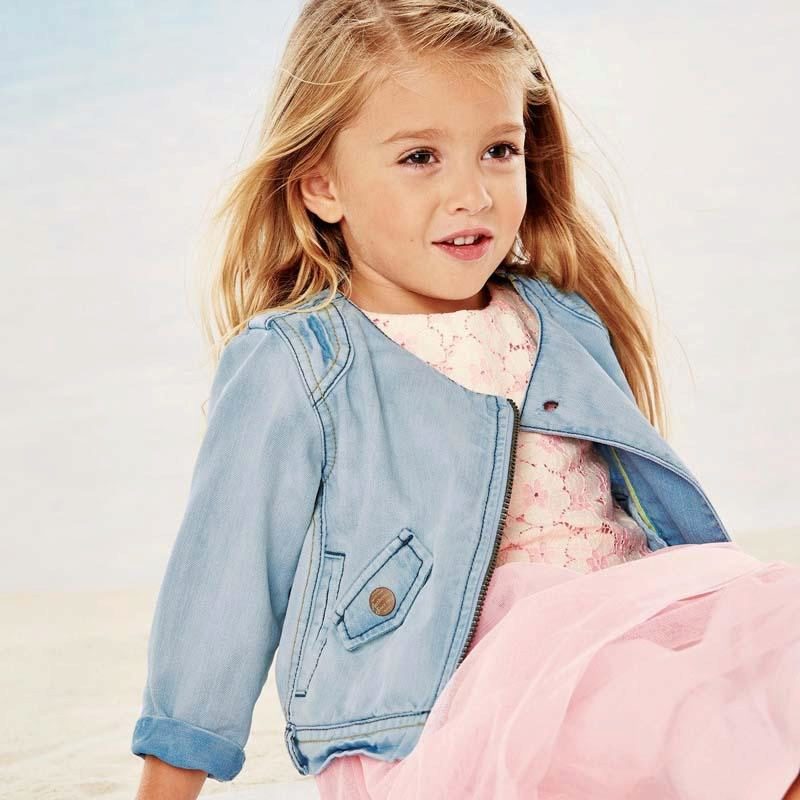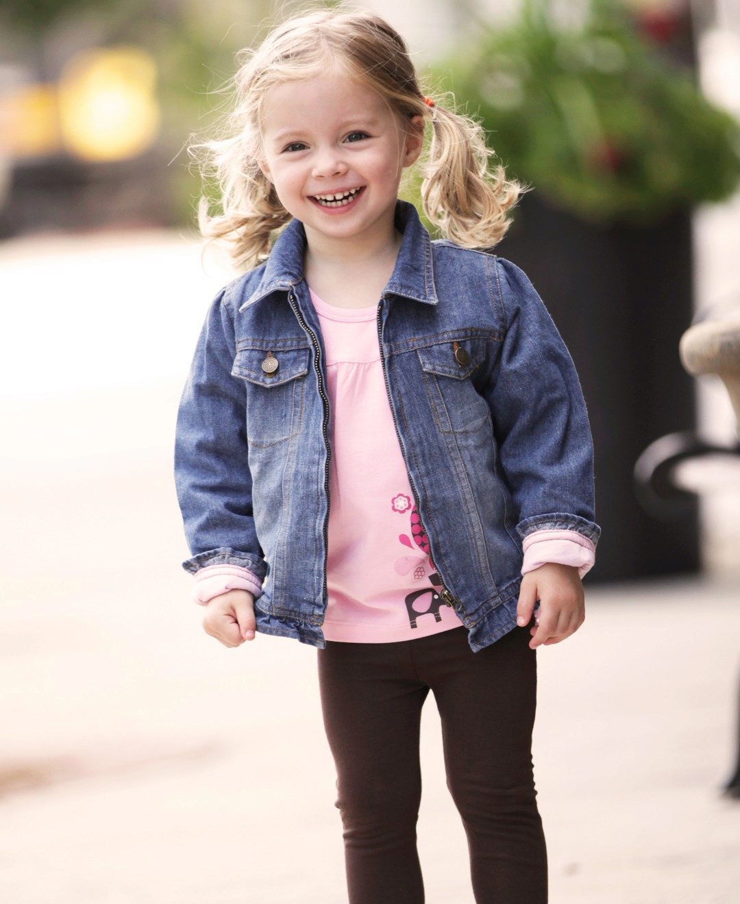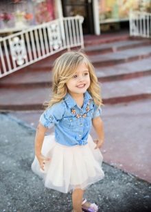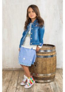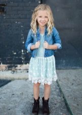 Today, fashionable denim jacket can be seen on a very tiny fashionistas, and older girls. Beautiful, stylish, practical thing goes well with other items of clothing. This jacket can be worn and jeans, and elegant dress, and a tracksuit.