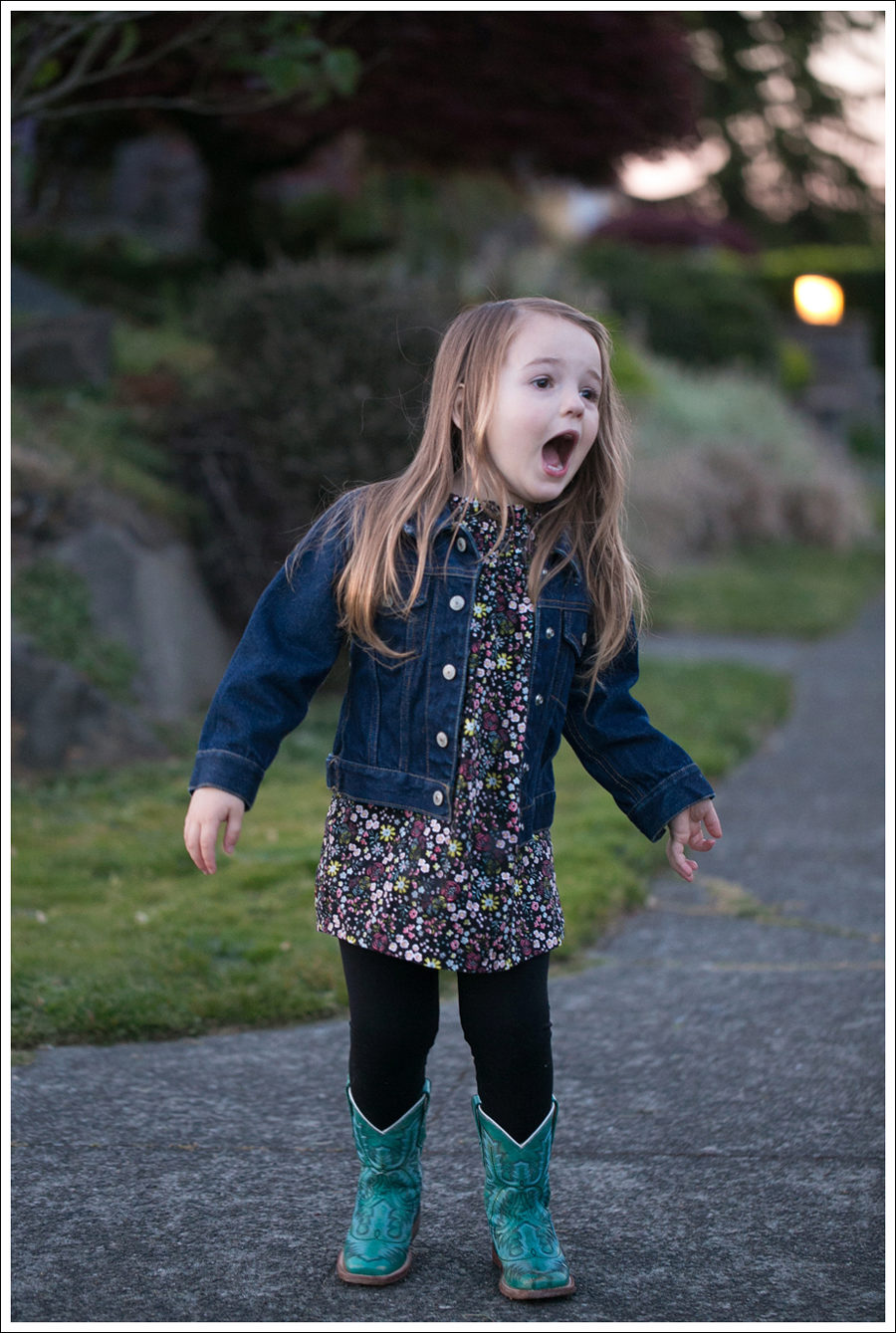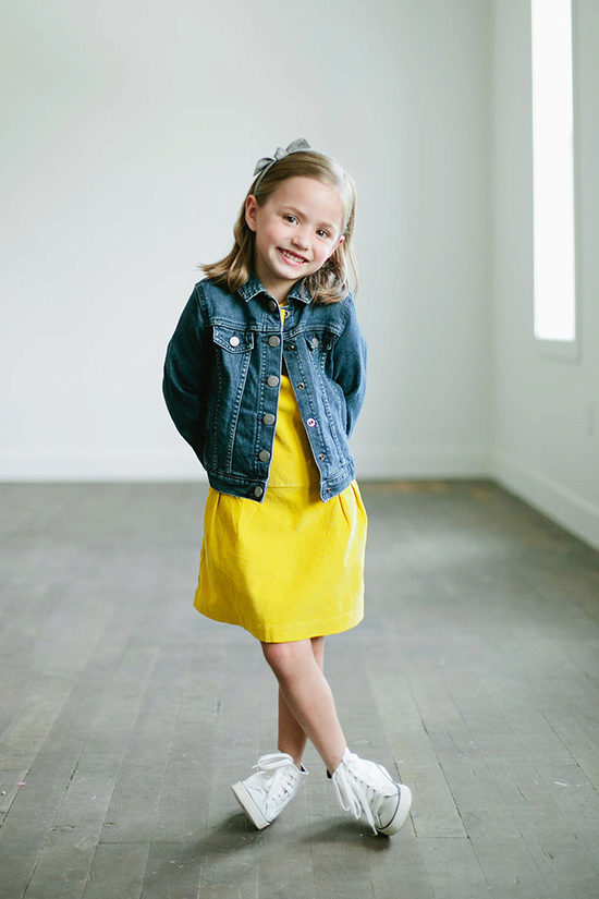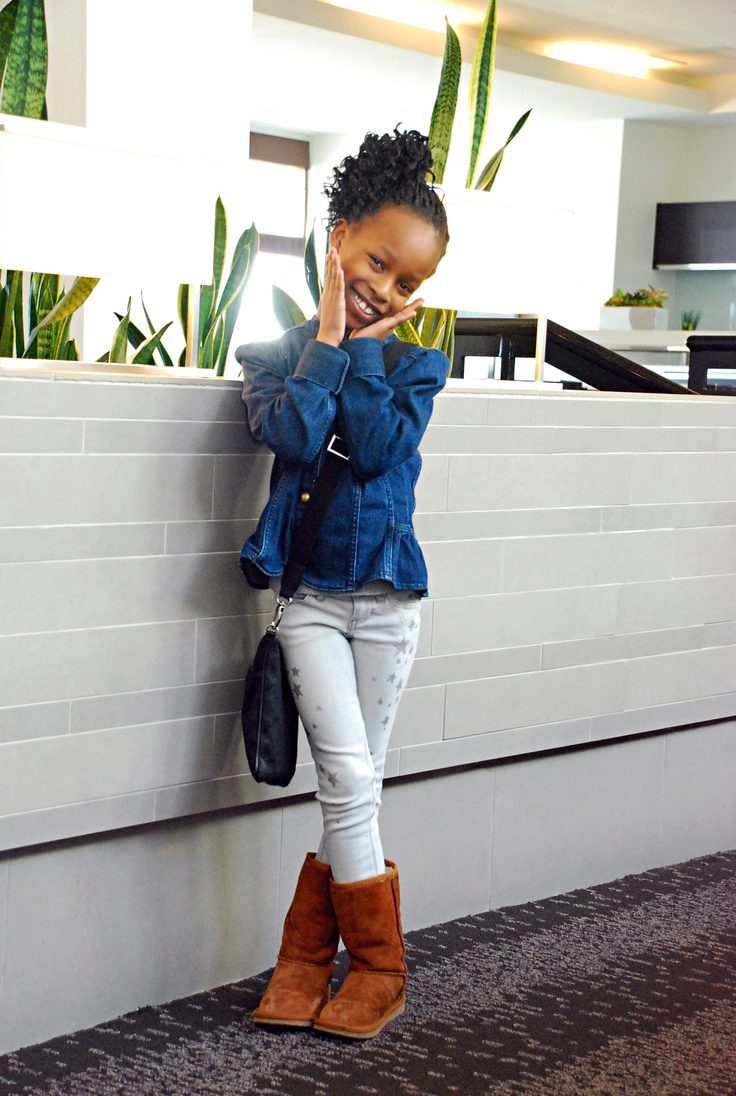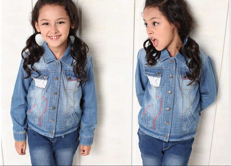 Denim is a fairly dense material, so you should not buy a jacket for growth, especially for a very young girl. She will just be hard and uncomfortable to carry a heavy thing.