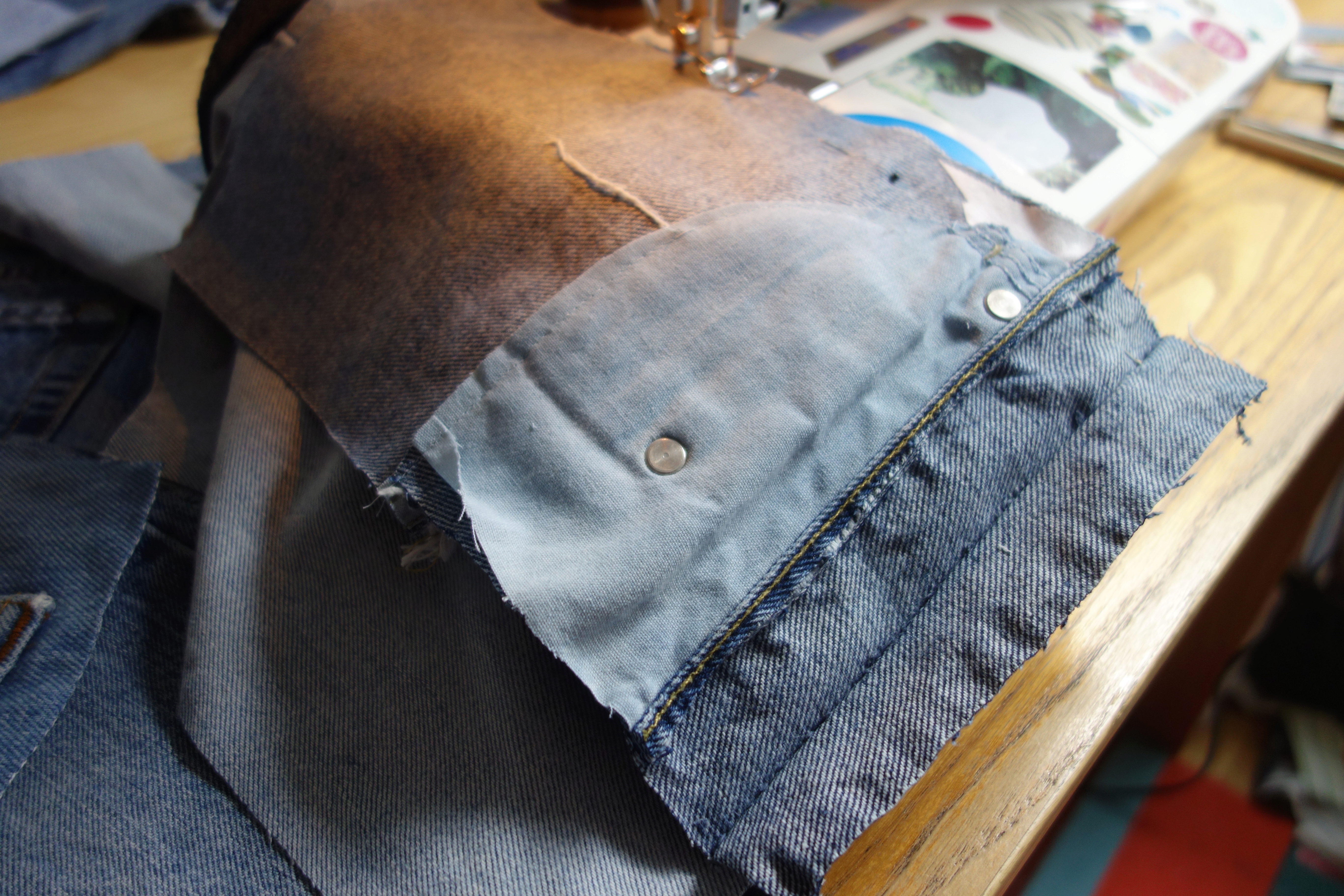 If you have several pairs of old jeans on hand, and even different colors, you can sew a very original jacket in a combination of several colors. For example, blue jeans will go to large parts, and from the remnants of blue denim you can make pockets, decorate the collar, belt, etc. in an original way.