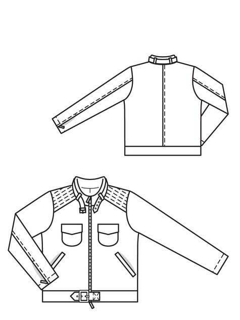 The jacket should not tightly fit the body, it is a free version of clothing.
