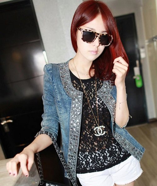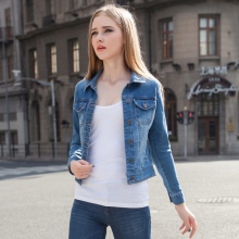 The short-cut denim jacket is suitable for stylish girls, teenagers, as well as for aged women. She emphasizes femininity and beauty of the figure.