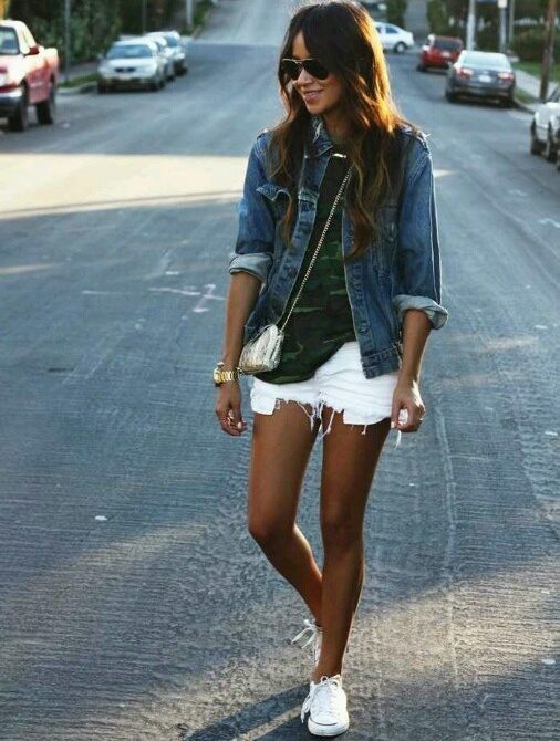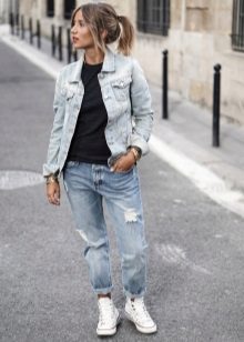 Sport lovers simply can't imagine their image without a short denim jacket. She looks great with sneakers and sneakers, shorts and breeches, as well as overalls.