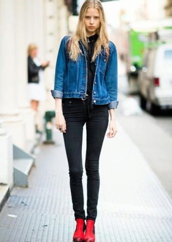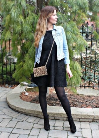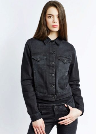 Another classic option is a black denim jacket. It can be used for unique ensembles with different things. This color scheme is chosen by girls with full shapes.If you choose the right shade, shape and length of a denim jacket, then it will become a stylish accent when creating a bow in different styles.
