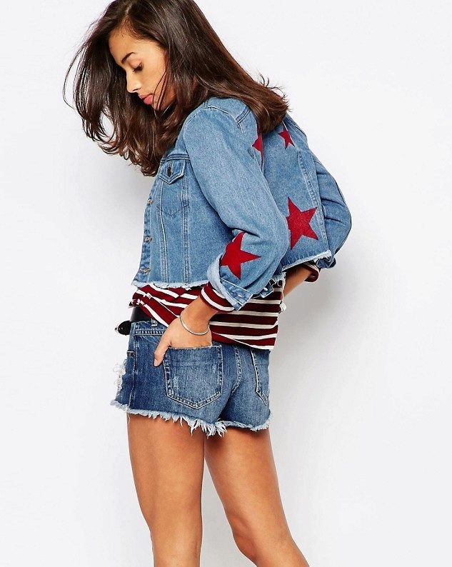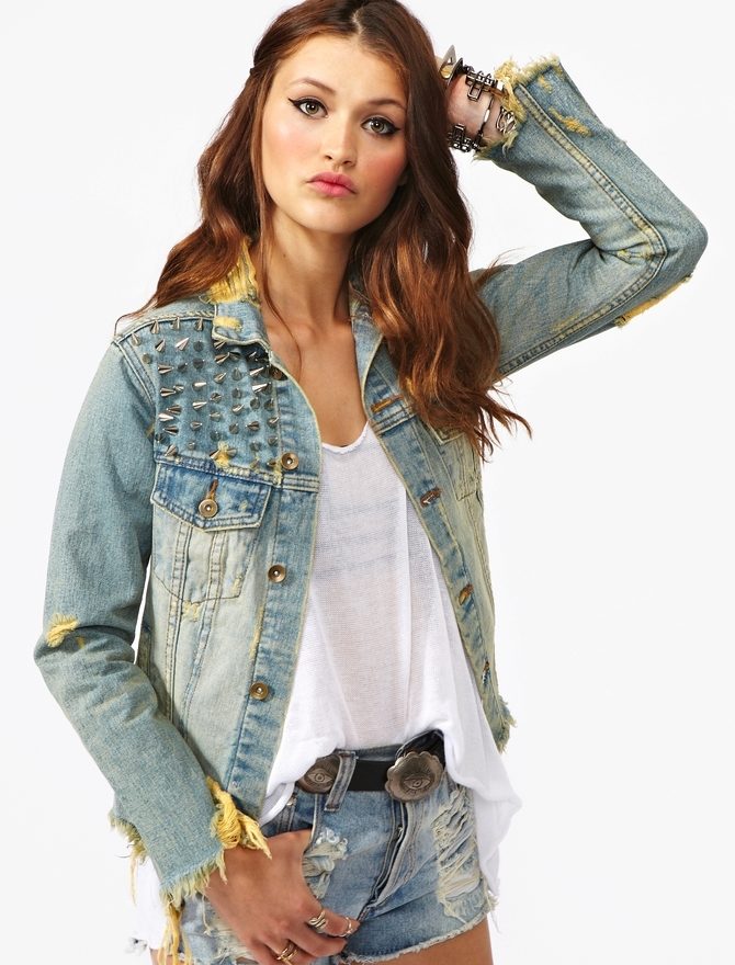 A short denim jacket is perfect for creating unusual and spectacular images, because it can be combined with different colors and elements of the wardrobe: