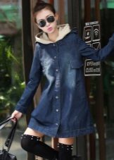 In the choice of dress or skirt that will fit your jacket, there are absolutely no restrictions. Regardless of the presence of a hood on jeans, it goes well with models of pencil, balloon, tulip and others. The length also does not matter. The main thing is that the skirt does not hide under the elongated model of the jacket, otherwise you may get the impression that you don’t put anything on the bottom