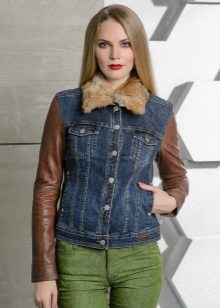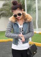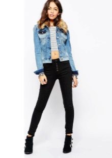 Denim jackets with fur are combined with almost any clothing. Fans of urban mood in clothes will be appreciated by bows with tight-fitting trousers or leggings. As a rule, accent in such images are accessories - bags, gloves, jewelry.