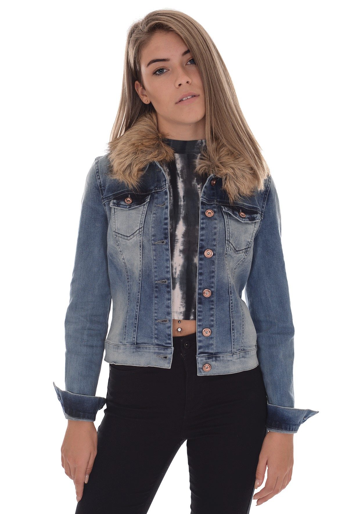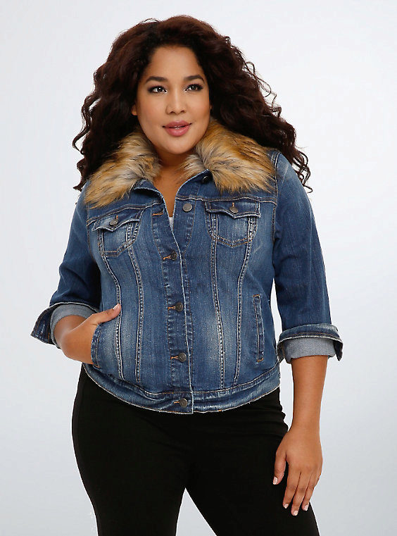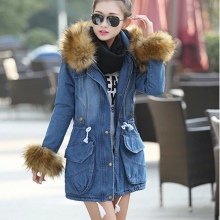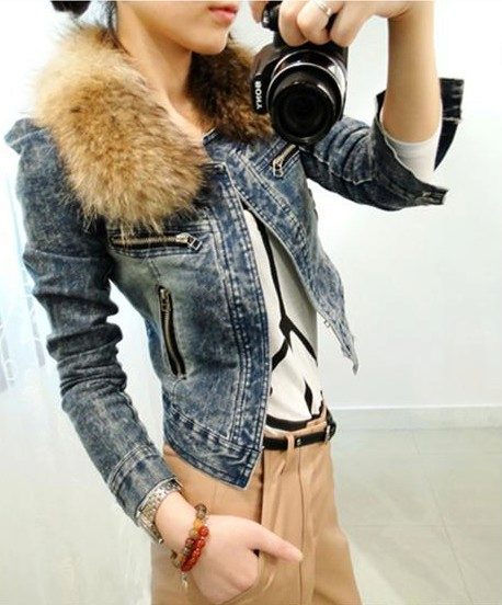 The use of faux fur in denim jackets is mainly due to the decoration of the product, as it does not give much heat, and designers can experiment with the color and texture of fur, pile length and its shape.