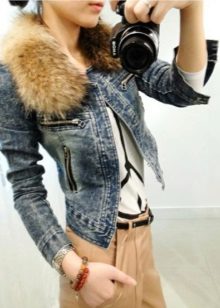 - Light jeans, designed for late spring and summer, will not warm you in cold weather. Maximum, you can throw it over the main clothes in a cool summer evening. And, despite the fact that the fur trim is not very appropriate in hot weather, in some models of denim jackets it looks very stylish and elegant.