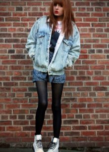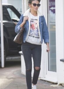 Decorated with prints models of denim jackets should be the main focus in any bow. In order to avoid the "overload" of color, the rest of the clothes in the image should be chosen soothing neutral shades. The maximum, where else you can apply brightness, these are jewelry - a large bracelet or hoop earrings will be appropriate here. In sunny weather will be appropriate sunglasses.
