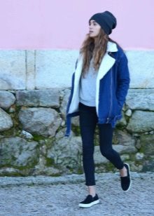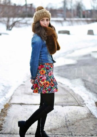 Combining with skirts or dresses and high heels can also be interesting if you choose their contrasting color. Also with a warmed jeans look great combination of high boots or boots without heels with shorts or leggings. This combination will give you the look of a bold, bold and free girl.
