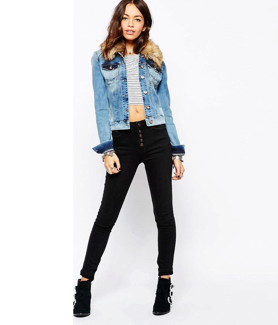 Of all the models of denim jackets, the model with natural fur looks especially luxurious. Despite the fact that denim itself is not a “noble” fabric, the styles of such jackets give its owner a special elegance and chic.
