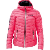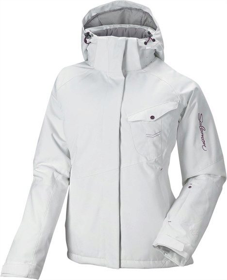 Girls who prefer an active lifestyle should pay attention to the ski jacket Salomon. It is equipped with an adjustable hood with cuffs, as well as a snow-protective skirt.